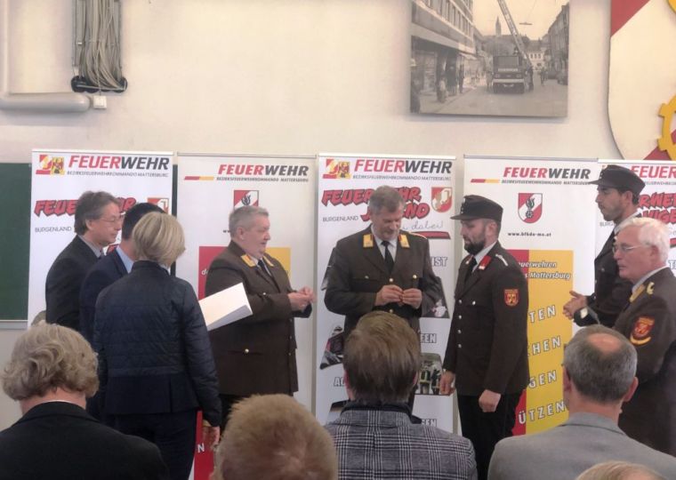 HLM Andreas Wutzlhofer, OBI Andreas Baier und HBI Johannes Welles wurde die Verdienstmedaille der Burgenländischen Landesregierung in Bronze für 25-Jährige verdienstvolle Tätigkeit in der Feuerwehr überreicht.