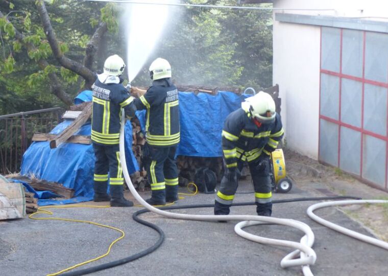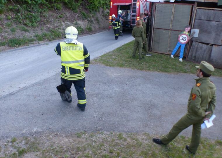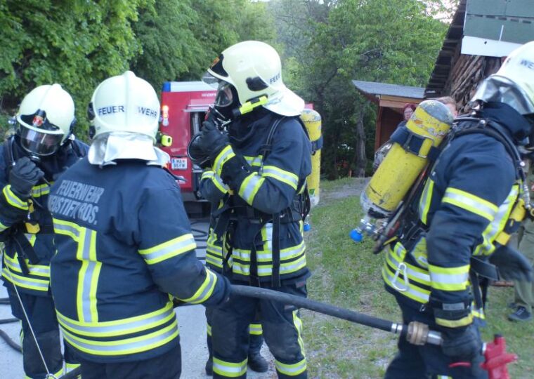 Die Brandbekämpfung erfolgte mittels drei C-Rohren. Insgesamt waren vier Einsatzfahrzeuge und 27 Feuerwehrmitglieder am Übungsgeschehen beteiligt. Als Einsatzleiter fungierte BM Michael Koch.