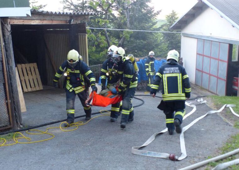 Übungsszenario In einer Lagerhalle der Fam. Geisendorfer in der Rosengasse 31 in Forchtenstein kommt es aus bisher unbekannter Ursache zu einem Brand, eine Person gilt als vermisst, weiterst sind Gasflaschen im Brandobjekt sowie ein Traktor abgestellt.