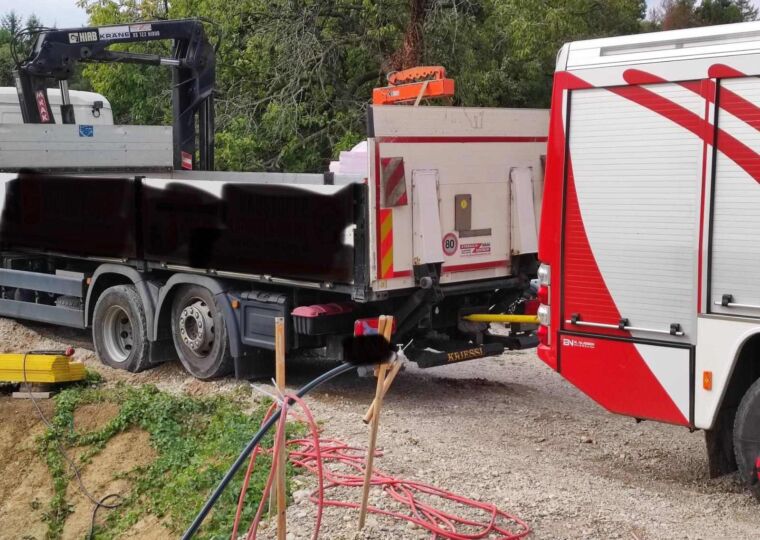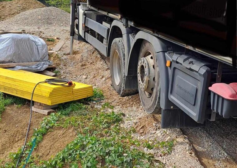 Heute den 18. September 2024 wurden wir um 10.04 Uhr zu einer LKW Bergung am Satzlweg alarmiert. Der LKW welcher Ladetätgkeiten auf einer Baustelle durchführte versank aufgrund des weichen Untergrundes im Erdreich.