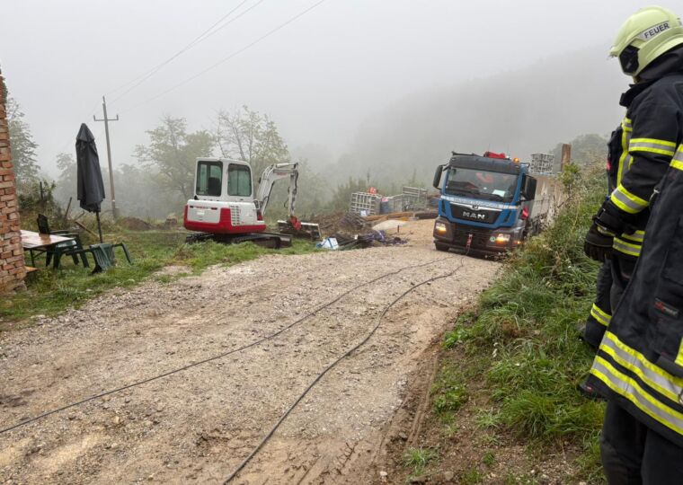 Am Einsatzort stellte sich heraus, dass ein LKW in einer Baustelle stecken geblieben war. Das Fahrzeug konnte mit Hilfe der Seilwinde rasch geborgen werden.