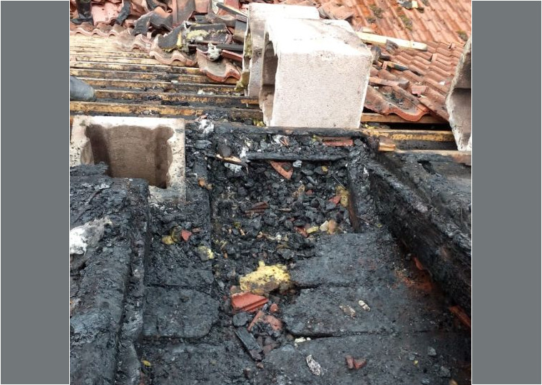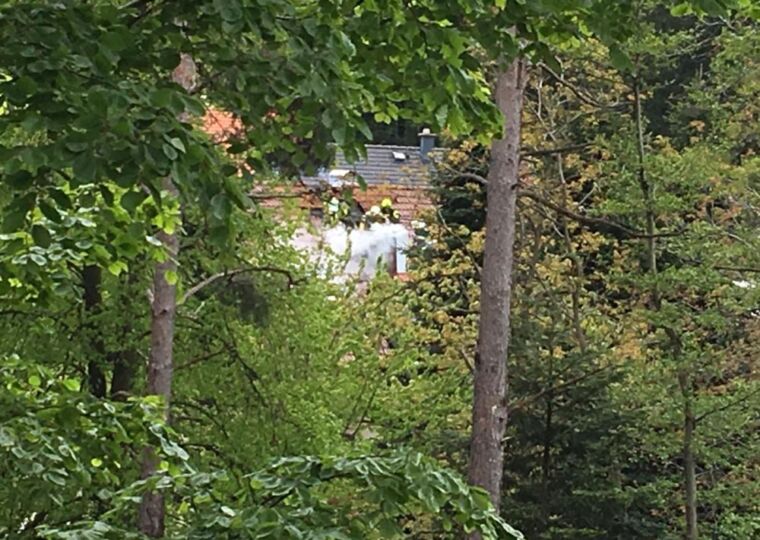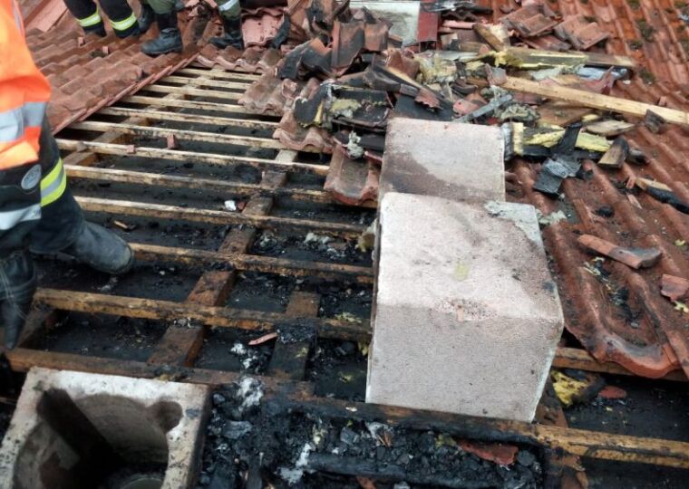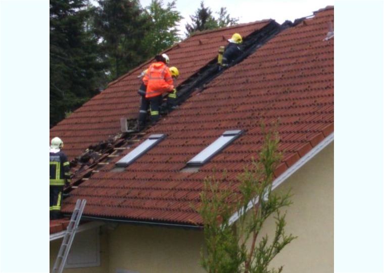 Im Bereich des Kamins war ein Feuer ausgebrochen, das sich bereits auf Teile des Dachstuhls ausgebreitet hatte.