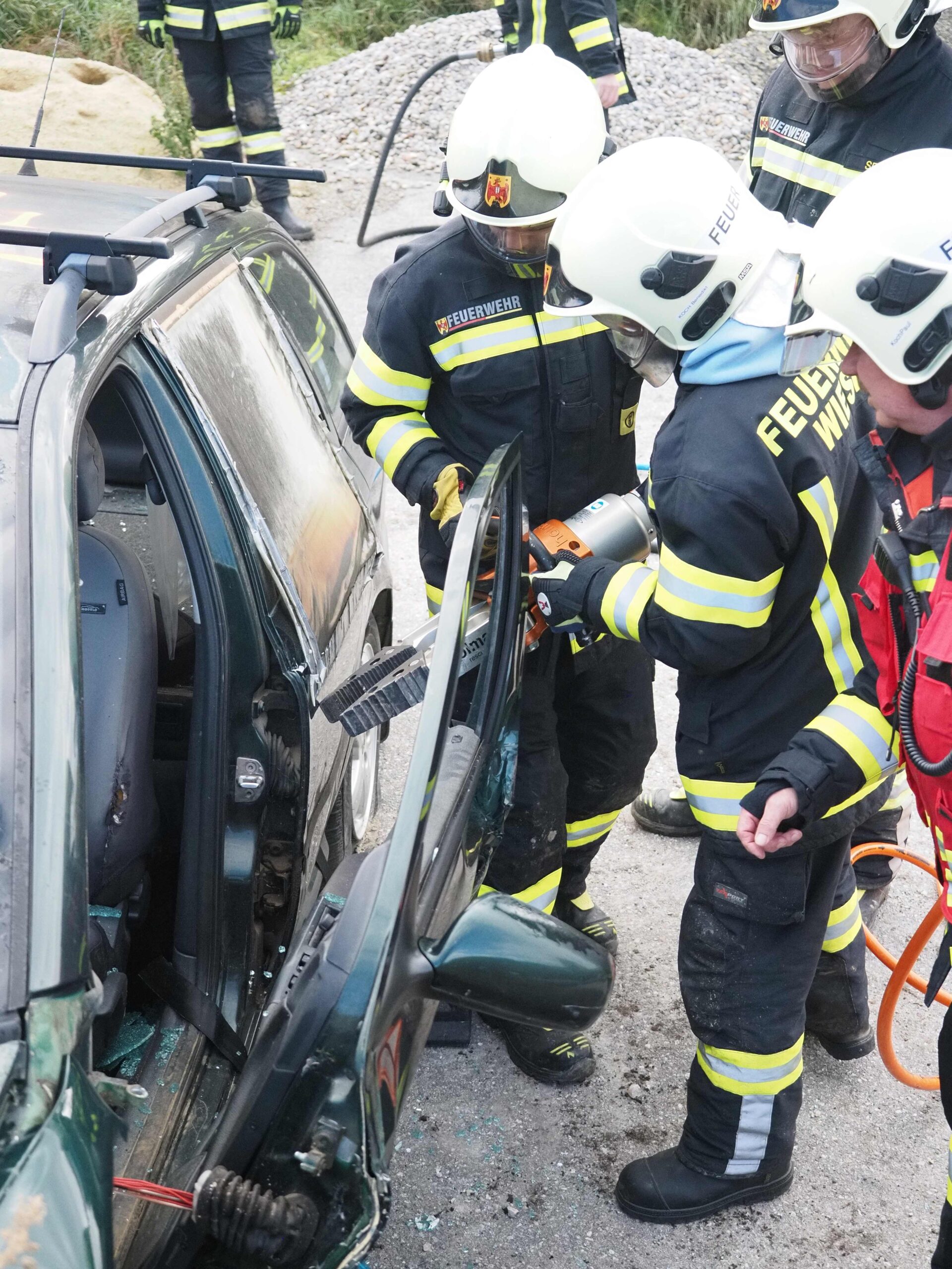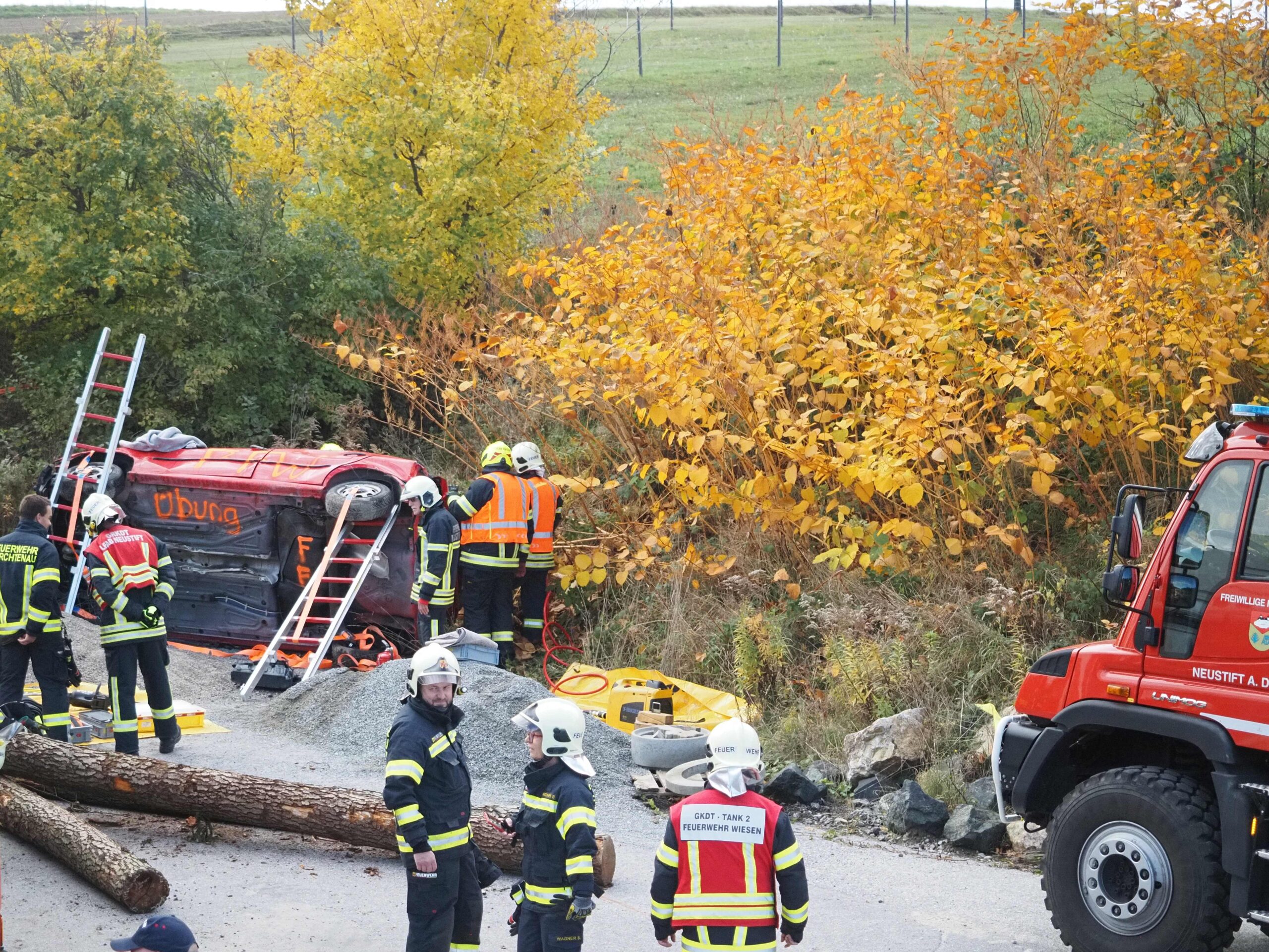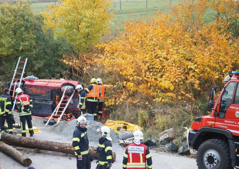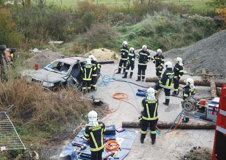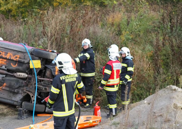 Das Übungsszenario stellte einen technischen Massenunfall mit mehreren Fahrzeugen und eingeklemmten Personen dar. Übungsbeginn war um 9 Uhr. Beim Eintreffen des ersten Einsatzfahrzeuges der FF Wiesen bot sich dem Einsatzleiter ein herausforderndes Bild: Mehrere Fahrzeuge waren verunfallt, mehrere Personen befanden sich noch in den Wracks eingeklemmt.
