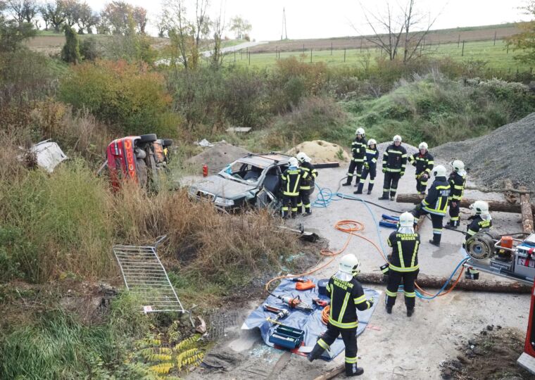 Nach rund 40 Minuten konnte das Übungsziel erfolgreich erreicht und alle „verletzten“ Personen aus den Fahrzeugen gerettet werden. Insgesamt standen rund 40 Feuerwehrmitglieder mit sechs Einsatzfahrzeugen im Übungseinsatz.