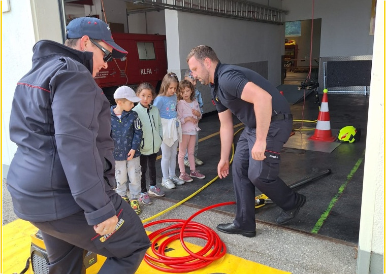 Die Kinder konnten selbst erleben, wie es sich anfühlt, einen Feuerwehrschlauch zu halten und Wasser zu spritzen. Diese Aktivitäten brachten den Kindern nicht nur viel Spaß, sondern auch ein besseres Verständnis für die Arbeit der Feuerwehr.