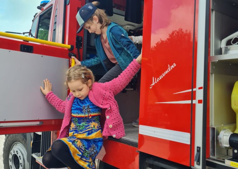 Der absolute Höhepunkt des Besuchs war jedoch das Mitfahren in den Feuerwehrautos. In kleinen Gruppen durften die Kinder Platz nehmen und sich einmal so richtig als Feuerwehrmann oder Feuerwehrfrau fühlen. Mit strahlenden Augen und viel Begeisterung genossen sie die Fahrt. Als dann auch noch das Blaulicht und die Sirene getestet wurden, kannte die Freude keine Grenzen mehr. Die Kinder jubelten und klatschten vor Aufregung.