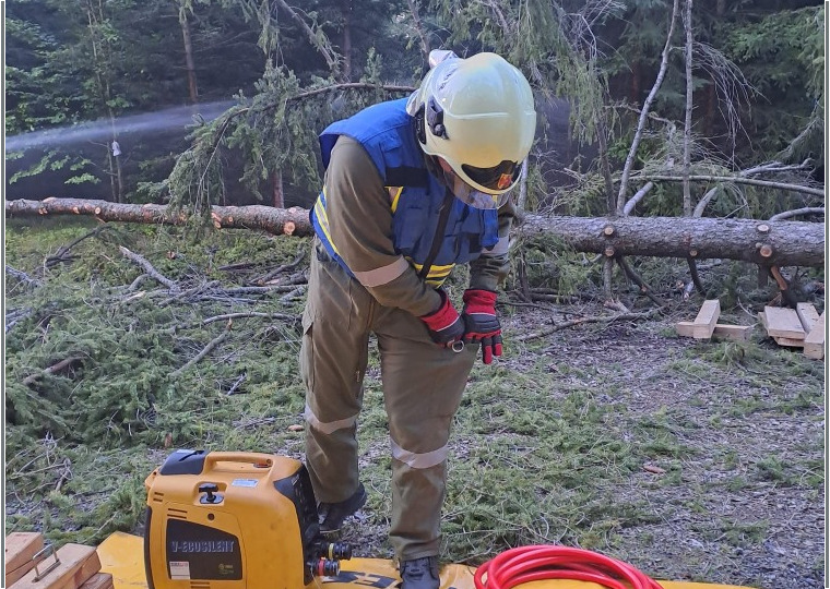 Am 15.09.2023 führte die Freiwillige Feuerwehr Neustift an der Rosalia eine Rettungsübung durch. Das Szenario umfasste einen Autounfall mit eingeklemmten Personen. Um die Herausforderung zu erhöhen, wurde ein Baumstamm auf das Fahrzeug gelegt, um eine Situation zu simulieren, bei der während Forstarbeiten ein Baum auf das Auto gefallen ist. Der Baumstamm musste gesichert werden, bevor die eigentliche Rettungsaktion stattfinden konnte. Das Team stabilisierte erfolgreich das Fahrzeug und den Baum und rettete dann die „verletzte Person“ mithilfe hydraulischer Rettungsgeräte. Gleichzeitig wurde ein Flurbrand gelöscht und ein Brandschutz beim VU-PKW hergestellt. Der Fokus der Übung lag auf dem korrekten Umgang mit der Ausrüstung und taktischen Fähigkeiten. Nach der Übung wurden die Trainingspuppe, die als Unfallopfer diente, sicher verstaut. An der Aktion waren die Fahrzeuge TLF-A, LFB-A und KLF-A sowie 18 Feuerwehrmitglieder beteiligt.